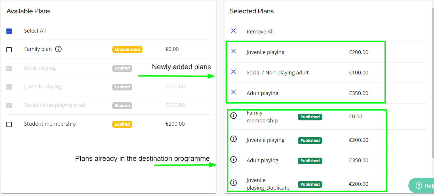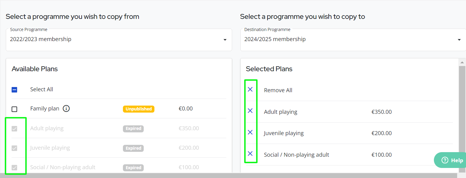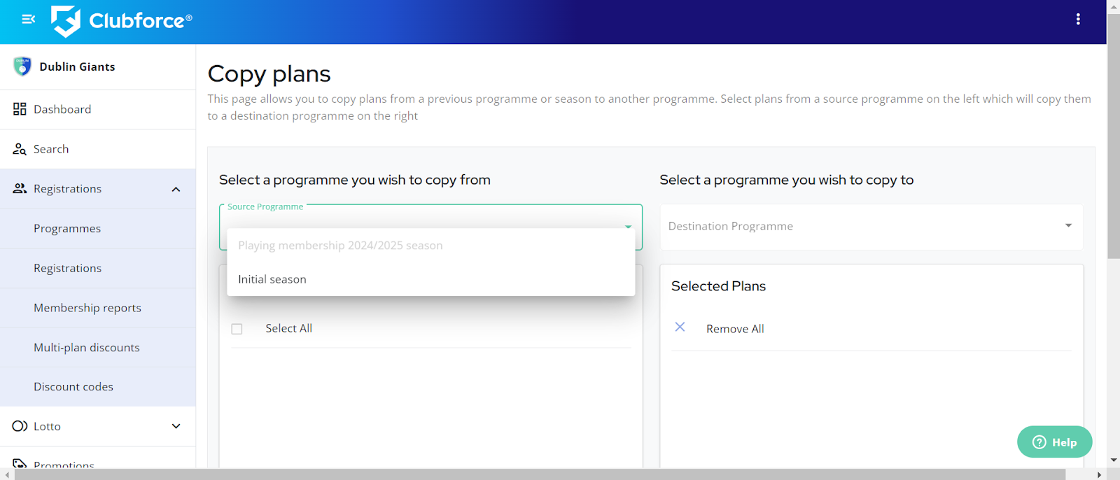 Copying Registration Plans to a Created Programme